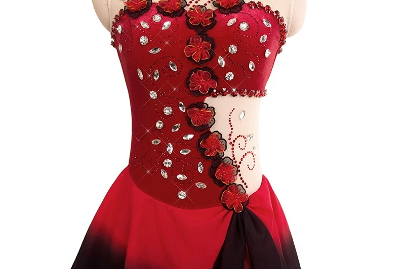 Custom Figure Skating Dress for Girls and Women Gradient Red Black Performance Competition Skating Costume