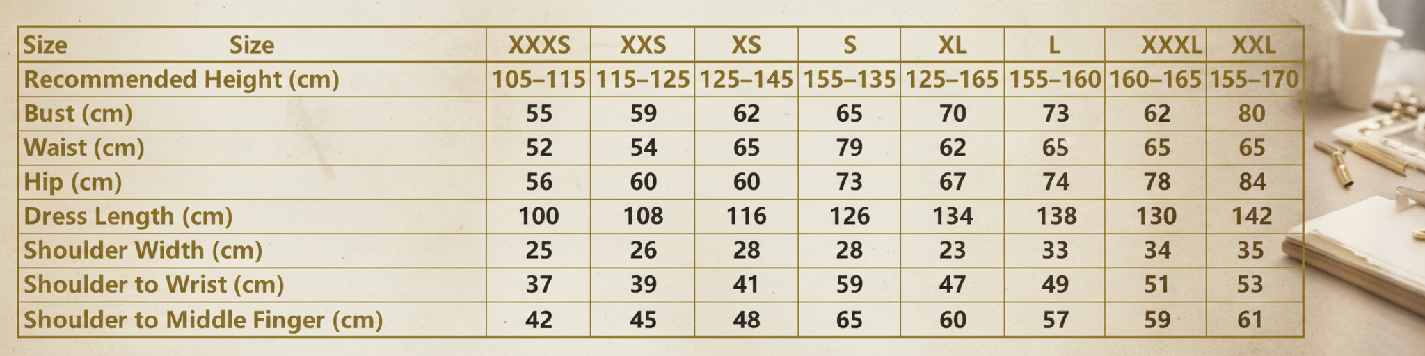 All dresses and skirts are handmade, so a slight measurement deviation of 1–2 cm may occur. Thank you for your understanding.