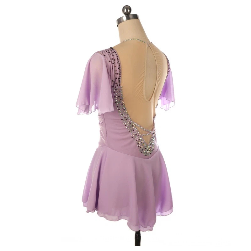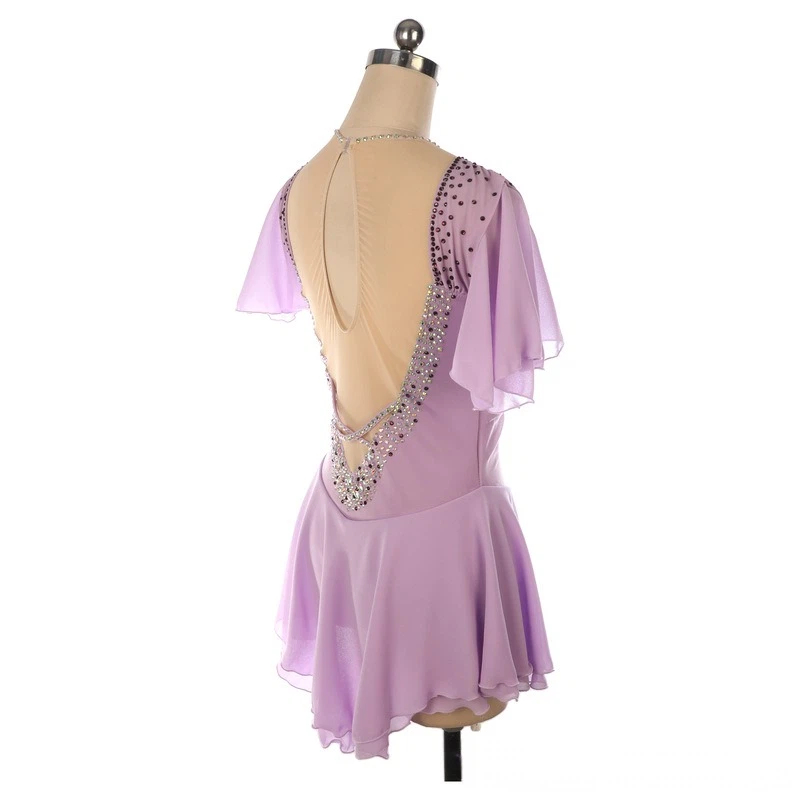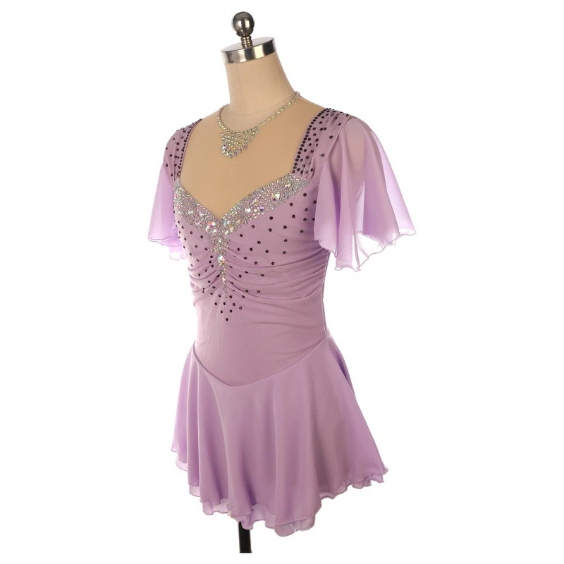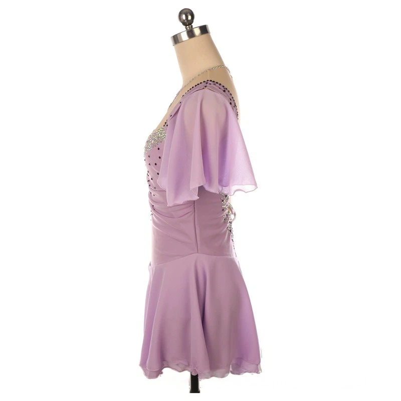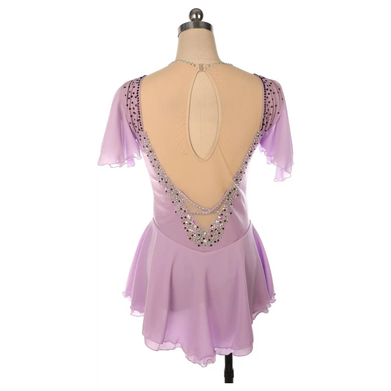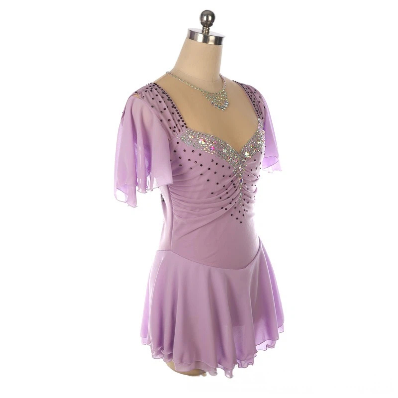 ustom Figure Skating Dress Competition Costume for Kids and Adults Short Sleeve Pleated Rhinestone Performance Skating Outfit